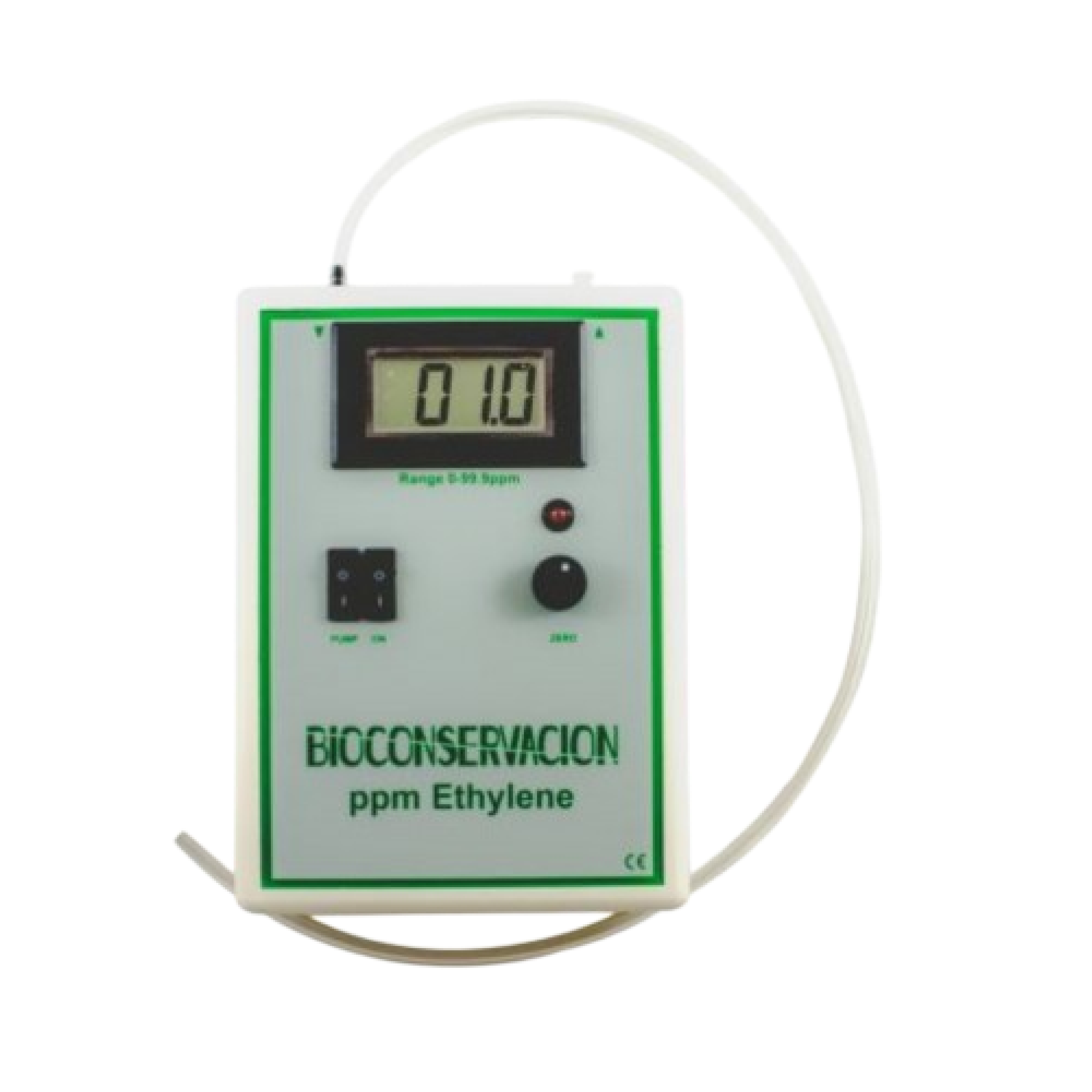 Gestione los niveles de etileno en la cadena de suministro de productos frescos con el Medidor de etileno. Este instrumento portátil detecta niveles de etileno de 0 a 100 ppm, garantizando lecturas precisas sin interferencias de hidrógeno o dióxido de carbono.