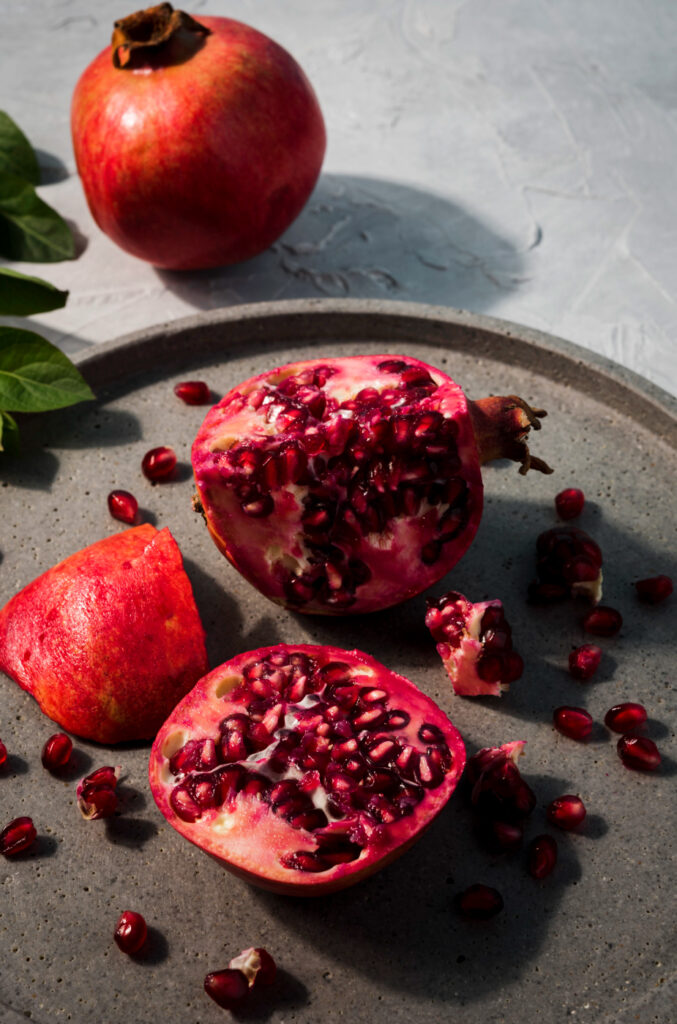 Las granadas se cosechan en su plena madurez, mostrando un color rojo sin variaciones. El jugo debe tener una acidez inferior al 1.85%. La calidad se mide por la ausencia de defectos, el color de la piel y un contenido de sólidos solubles mayor al 15%, lo que asegura un buen sabor.