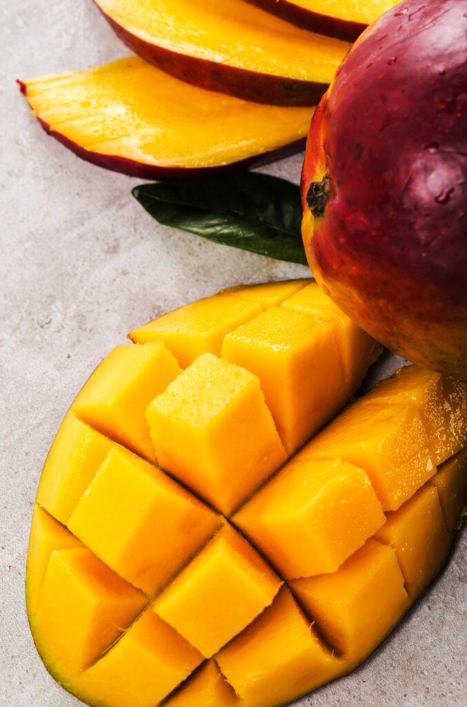 El mango es una fruta ovalada de 300 a 600 gramos, con un sabor dulce y carne anaranjada. Es bajo en calorías (65 por cada 100 g) y rico en fibra (2 g). Se cosecha en su madurez fisiológica, lo que permite un cambio de color y textura. La calidad se mide por forma, tamaño, color de la piel y firmeza, asegurando la ausencia de defectos.
